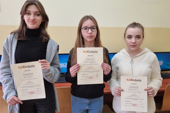 21 marca 2023r. w I LO odbył się Konkurs z Języka Polskiego o Puchar Dyrektora I Liceum Ogólnokształcącego im. Stanisława Dubois w Koszalinie. Uczennice naszej szkoły: Gaja Grzelak VIII a, Marcela Grębowicz VIII B, Klaudia Pawlicz VIII c zostały laureatkami ww. zmagań konkursowych. Dziękujemy, gratulujemy i życzymy dalszych sukcesów!