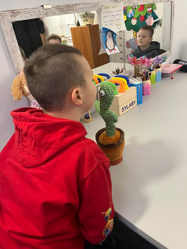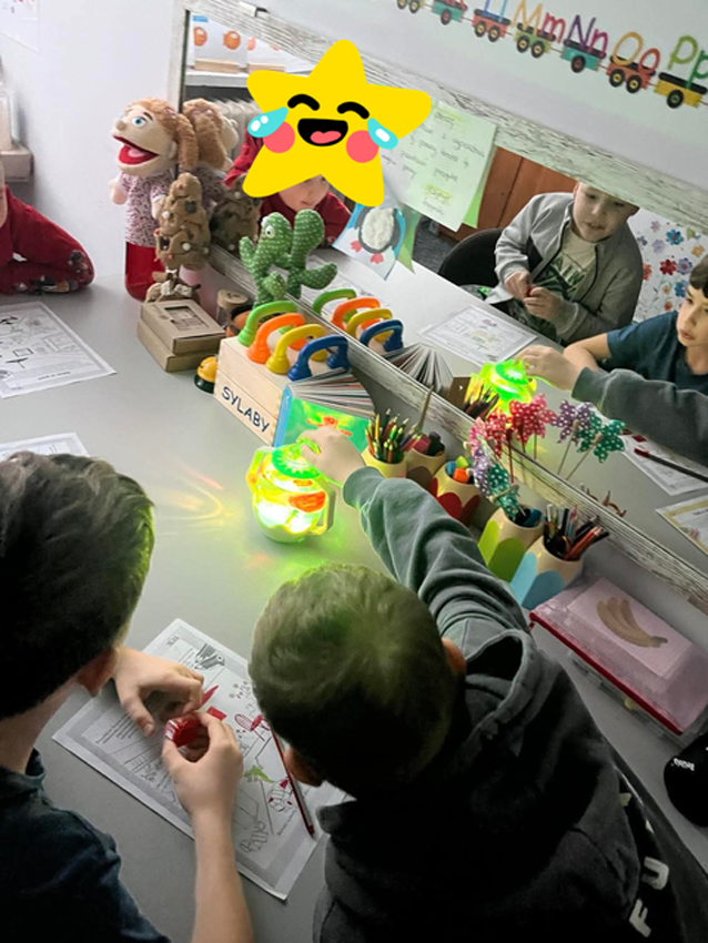 - Utrwalanie oraz automatyzacja wywołanych dźwięków. Praca nad poprawną wymową głosek na materiale językowym w słowach we wszystkich pozycjach i sąsiedztwach fonetycznych, ćwiczenia utrwalające wywołanych głosek w połączeniach wyrazowych, zdaniach, krótkich tekstach, wierszykach, automatyzacja poprawnej wymowy w mowie spontanicznej, opowiadanie ilustracji, historyjek obrazkowych, rozmowy kierowane oraz swobodne – utrwalanie wzorców kinestetyczno- ruchowych a także włączenie autokontroli słuchowej.