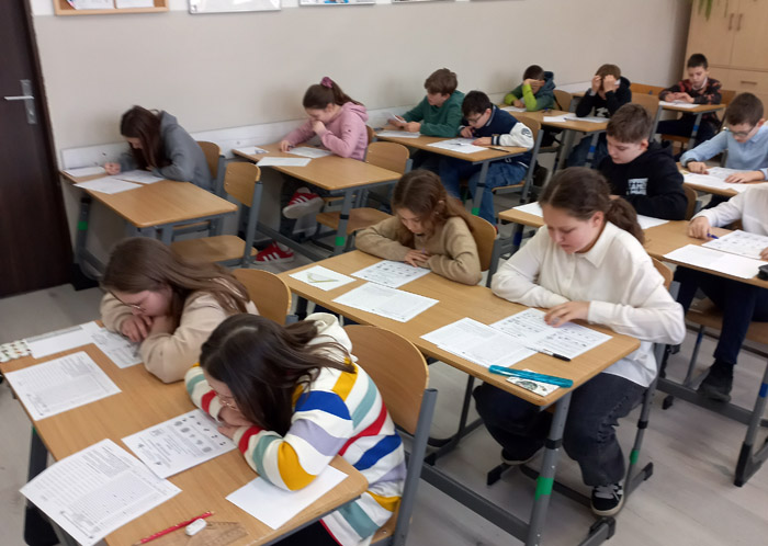 W zmaganiach uczestniczyło wielu uczniów naszej szkoły. Przez 75 minut młodzi matematycy z wielkim zaangażowaniem rozwiązywali testy w kategorii: