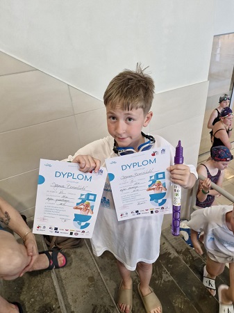 XVII AMATORSKIE MIĘDZYSZKOLNE ZAWODY PŁYWACKIE UMIEM PŁYWAĆ 25.04.25 przyniosły naszym uczniom szereg świetnych wyników. Michalina Cyrankowska z życiowym czasem 35:25 zajęła I m. st. dowolnym na dystansie 50m, oraz II miejsce st. klasycznym i została najlepszą zawodniczką zawodów. Oliwier Ścibor -II m st. klasycznym 25m. Nagrodzeni za punktowane miejsca 1-6 zostali także Szymon Borusiński, Maria Towalska , Millan Marjański, Antonina Kowalska, Kacper Różycki.