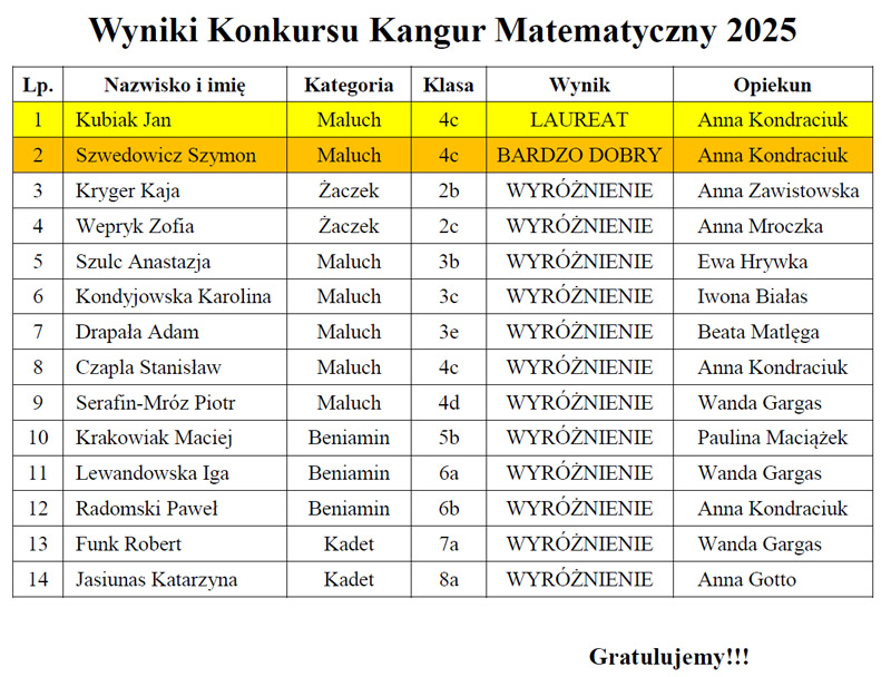 Konkurs KANGUR matematyczny 2025