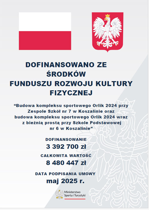 Podpisanie umowy na budowę orlika przy SP6 w Koszalinie (GK24 11 sierpnia 2025 r.)W ramach projektu powstanie m.in.: |
