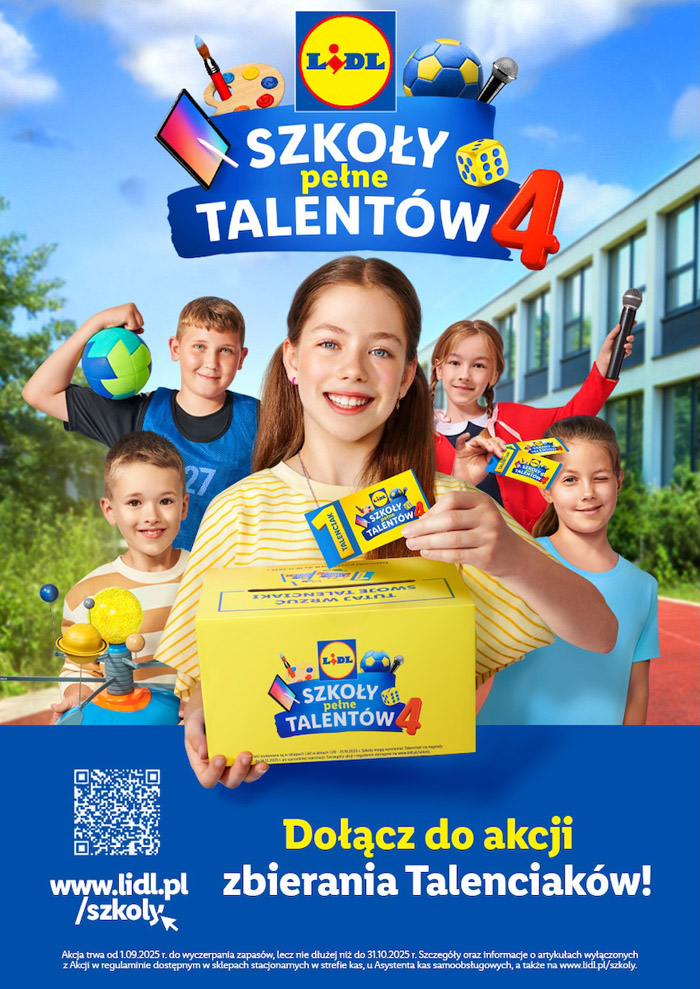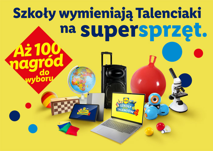 Informujemy, że nasza szkoła kolejny raz bierze udział w ogólnopolskiej akcji „Lidla – Talenciaki”, która wspiera rozwój uczniów poprzez doposażenie szkół w sprzęt sportowy, edukacyjny i artystyczny.
