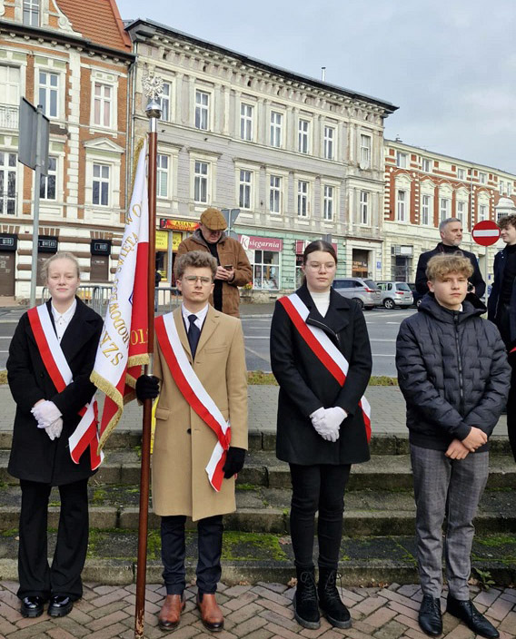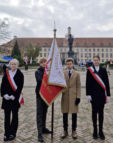 11 listopada poczet sztandarowy naszej szkoły wziął udział w uroczystości z okazji rocznicy odzyskania niepodległości. Odśpiewany został hymn, usłyszeliśmy okolicznościowe przemówienie, wzięliśmy udział w ceremonii wręczenia odznaczeń i złożeniu kwiatów pod pomnikiem Marszałka Józefa Piłsudskiego. Był to wyjątkowy czas dla naszej szkoły, czas w którym łączymy pamięć o bohaterach przeszłości z szacunkiem dla współczesnych obrońców naszej ojczyzny.