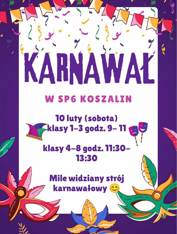 Dlatego też nasza 6-stka zaprasza wszystkich naszych uczniów na super zabawę karnawałową z dj-em.