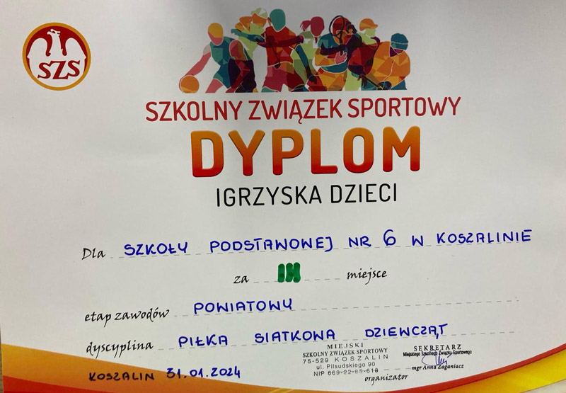 W dniu 31 stycznia 2024 odbył się Powiatowy Turniej Piłki Siatkowej Dziewcząt, drużyna naszej szkoły zajęła 3 miejsce.