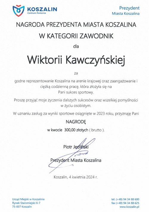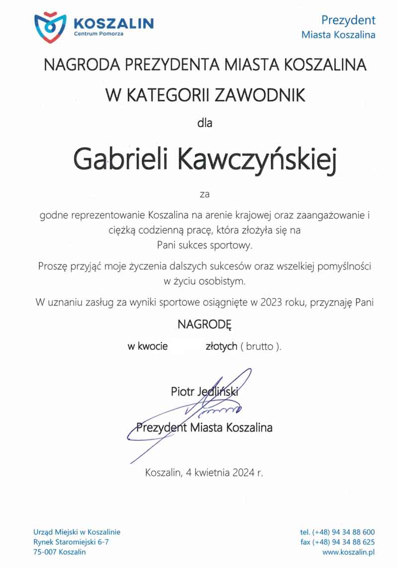 Nagrody Prezydenta Miasta Koszalina dla Gabrysi i Wiktorii Kawczyńskich