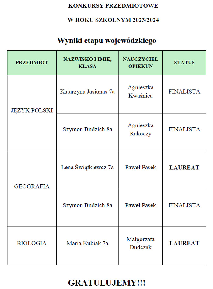 Wyniki konkursów-etap wojewódzkiArchiwum