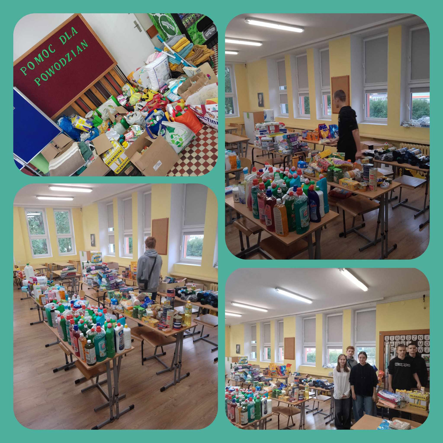 Zakończyliśmy zbiórkę pomocową dla powodzian. Dziękujemy bardzo wszystkim, którzy przyłączyli się do zbiórki. W połączeniu sił i mimo krótkiego czasu udało nam się zebrać sporą ilość najpotrzebniejszych rzeczy, Wolontariusze SKW dzielnie segregowali, porządkowali i pakowali dary, aby jak najbardziej ułatwić rozdysponowanie rzeczy w punkcie zbiórki.