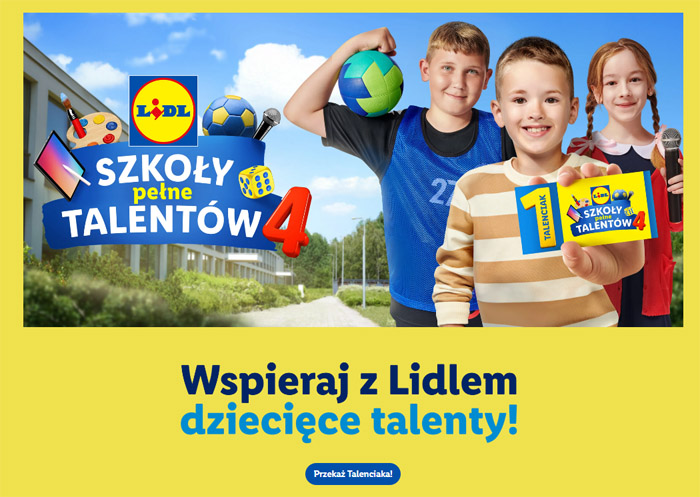 Informujemy, że nasza szkoła kolejny raz bierze udział w ogólnopolskiej akcji „Lidla – Talenciaki”, która wspiera rozwój uczniów poprzez doposażenie szkół w sprzęt sportowy, edukacyjny i artystyczny.