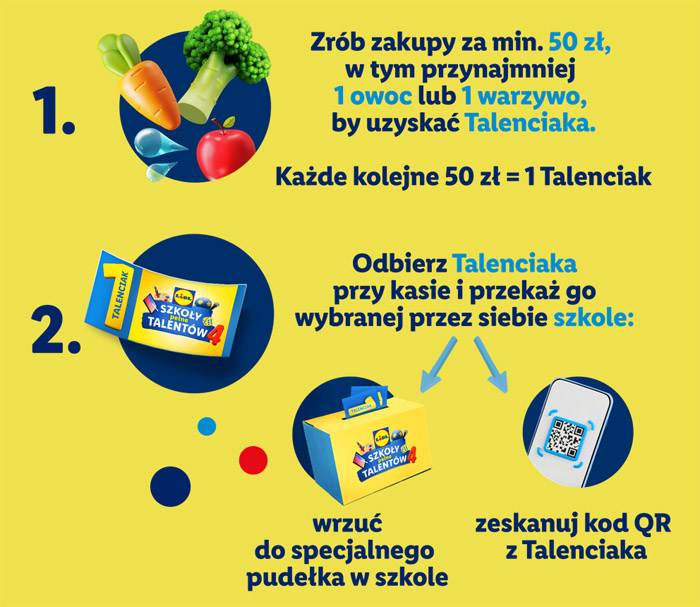 Robiąc zakupy w sklepach Lidl, wystarczy odebrać specjalne kupony – Talenciaki, które następnie można: