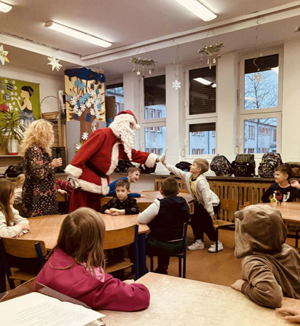 Dzisiaj naszą świetlicę odwiedził wyjątkowy gość — sam Święty Mikołaj! Dzieci przywitały go z ogromną radością, a potem zasypały trudnymi, zabawnymi i bardzo pomysłowymi pytaniami, z którymi nawet Mikołaj potrzebował chwili do namysłu. Wspólnie bawiliśmy się w quizy i konkursy z nagrodami, a atmosfera była pełna śmiechu i świątecznego ciepła. Mikołaj uważnie wysłuchał każdego dziecka, zrobił sobie ze wszystkimi pamiątkowe zdjęcie i oczywiście nie zapomniał o słodkich niespodziankach. To był piękny, radosny czas — pełen uśmiechów, emocji i magii zbliżających się świąt. Dziękujemy Mikołajowi za odwiedziny i już nie możemy doczekać się kolejnego roku!