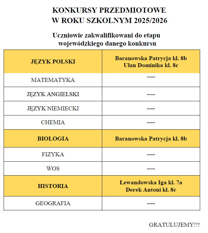 Uczniowie zakwalifikowani do etapu wojewódzkiego konkursów kuratoryjnych