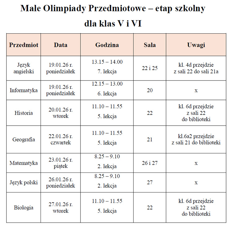 Harmonogram małych olimpiad przedmiotowychArchiwum